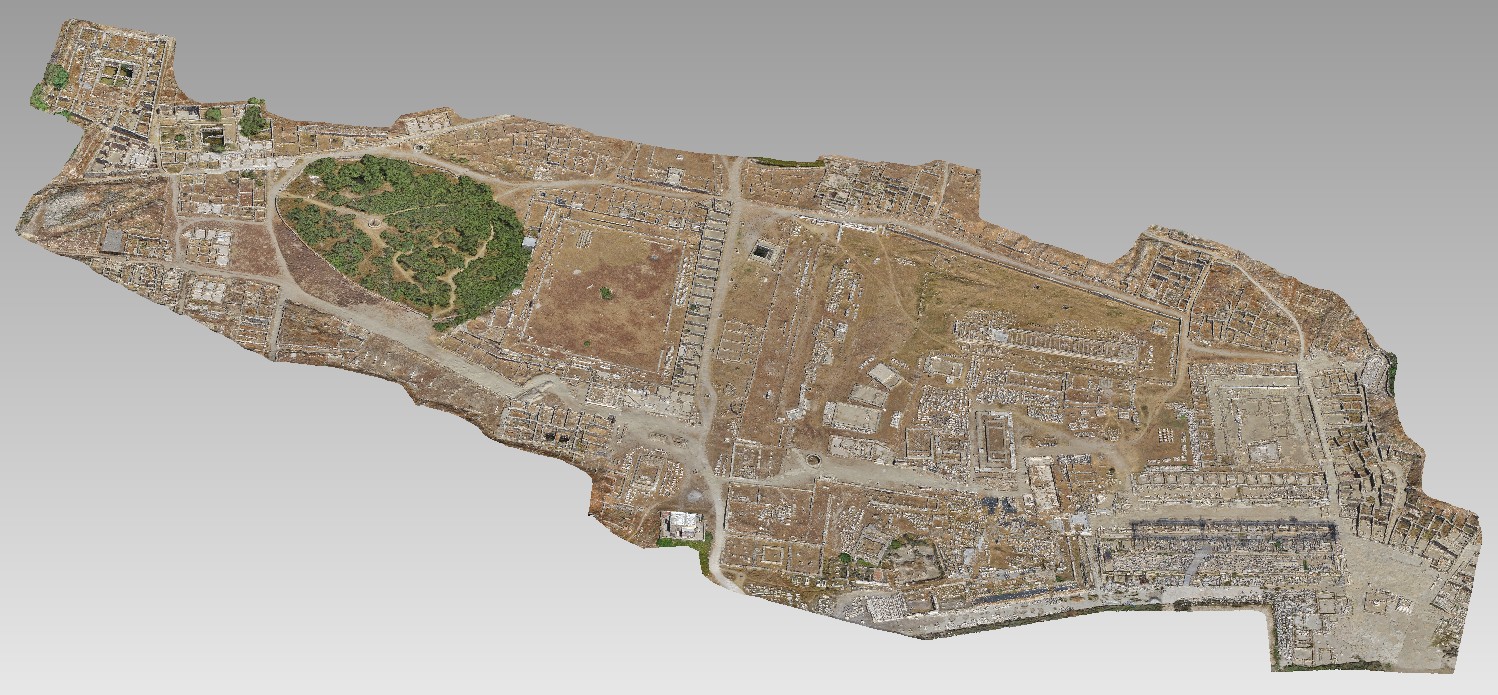 The 3D model features a large section of the archaeological site of Delos, which, among other monuments, includes the three temples of Apollo, the Houses or Treasuries, the Italian Agora, the sacred Lake Quarter, the Granite Palestra, the Stoa of Philip, and the early Christian basilica of Saint Kirykos. The 3D models can be accessed via the links potree.culture.gr and eureka3d.vm.fedcloud.eu