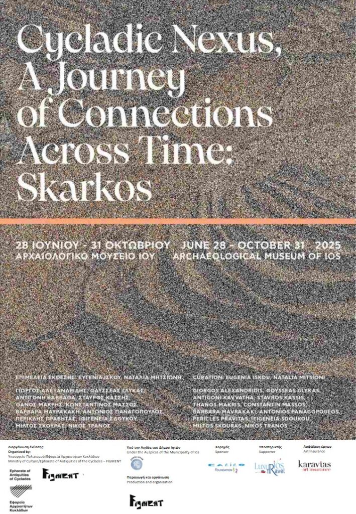 H Εφορεία Αρχαιοτήτων Κυκλάδων σε συνδιοργάνωση με την ΑΜΚΕ FIGMENT παρουσιάζει στο Αρχαιολογικό Μουσείο Ίου, έργα σύγχρονης τέχνης σε έναν δημιουργικό διάλογο με τα εκθέματα του Μουσείου. Η περιοδική έκθεση με τίτλο Cycladic Nexus – A Journey of Connections Across Time: Skarkos εγκαινιάζεται το Σάββατο 28 Ιουνίου 2025 και φέρνει κοντά το παρελθόν με το παρόν μέσα από σύγχρονες καλλιτεχνικές προσεγγίσεις.