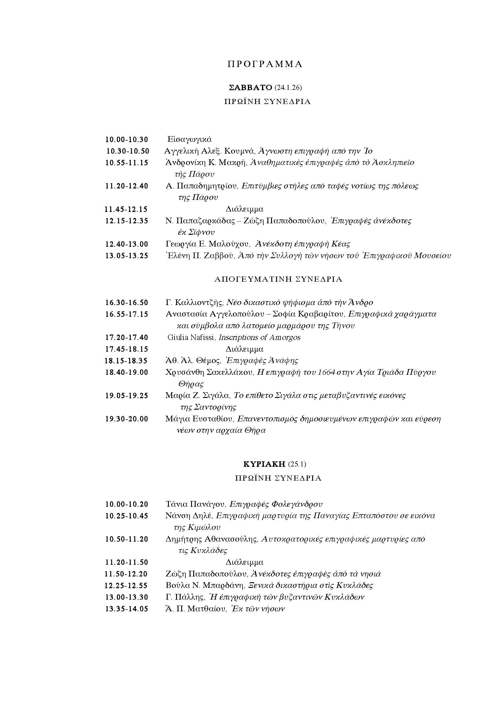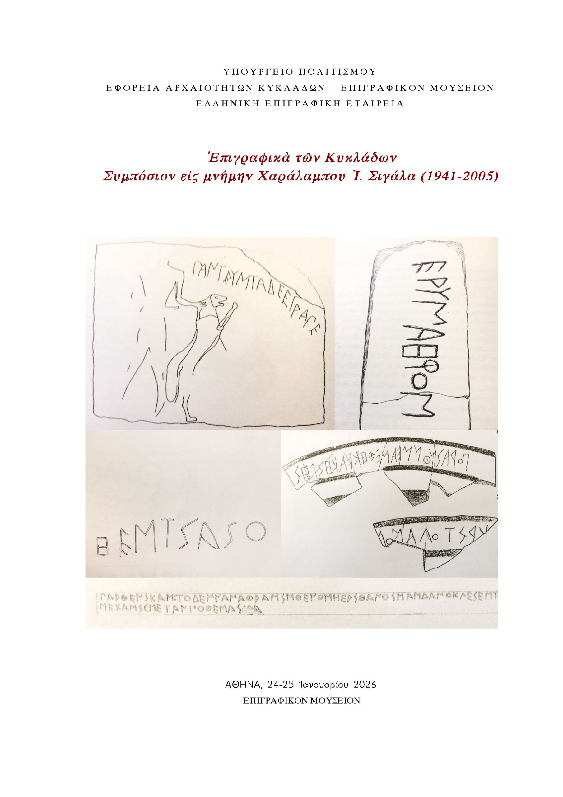 Η Εφορεία Αρχαιοτήτων Κυκλάδων (Υπουργείο Πολιτισμού), σε συνεργασία με το Επιγραφικό Μουσείο και την Ελληνική Επιγραφική Εταιρεία, διοργανώνει συμπόσιο εις μνήμην του αείμνηστου αρχαιολόγου Χαράλαμπου Σιγάλα στην Αθήνα (Επιγραφικό Μουσείο, 24-25 Ιανουαρίου 2026).