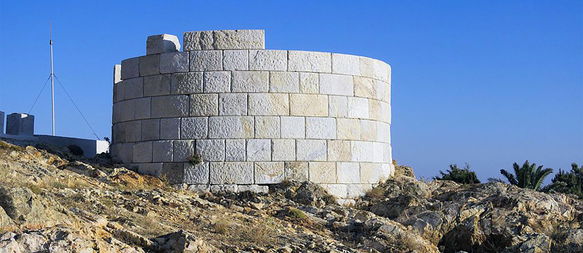 - Ένας κυκλικός πύργος, κατασκευασμένος από μάρμαρο και γνεύσιο στον αυχένα της χερσονήσου της Κεφάλας.