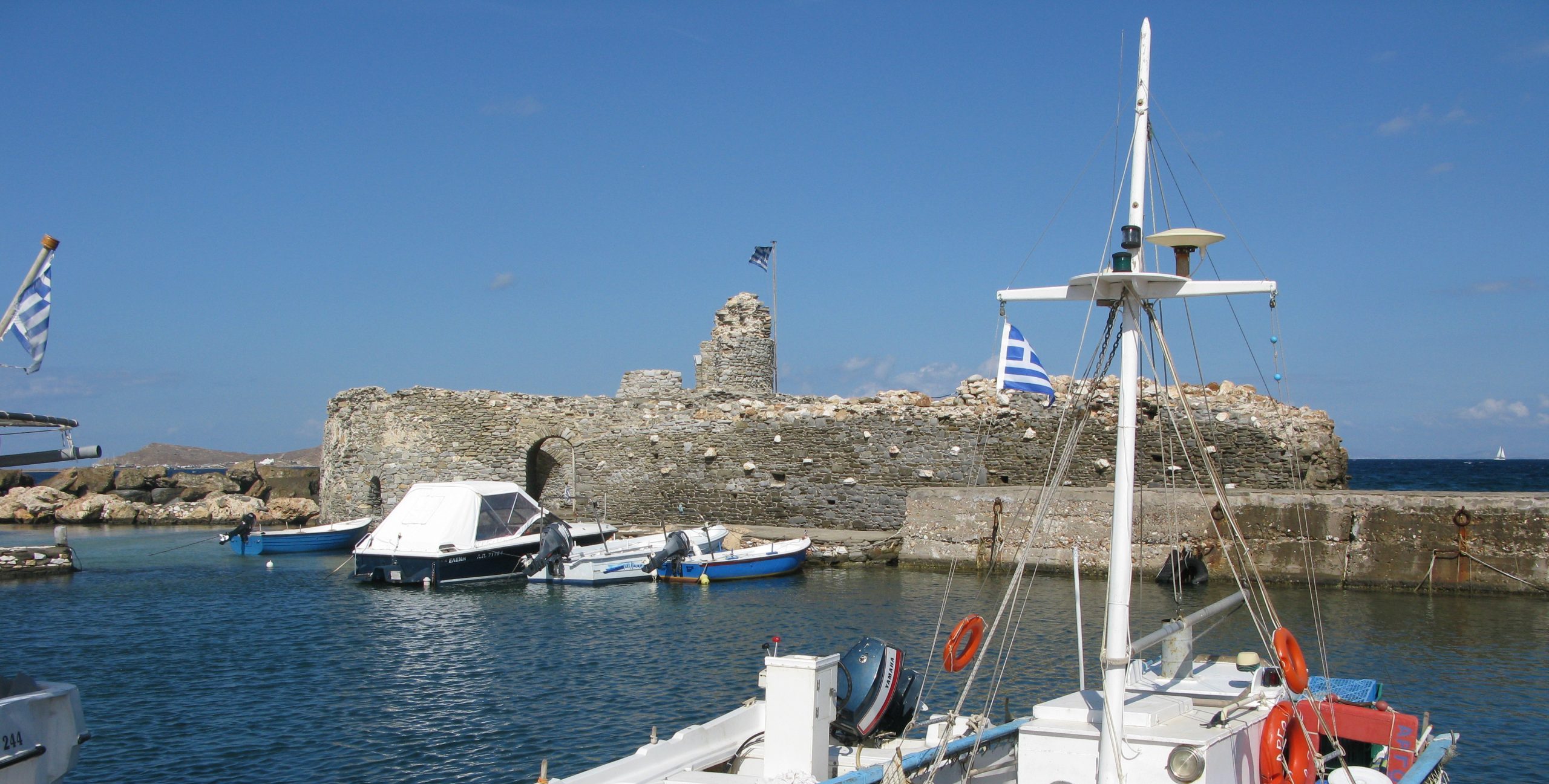 Το κάστρο της Νάουσας χτίστηκε μεταξύ του 14ου / 15ου αι. Σώζονται από τον οχυρωμένο οικισμό τρεις πύλες, ενώ ο κυκλικός πύργος στην είσοδο του λιμανιού είναι χτισμένος στις αρχές του 16ου αιώνα.