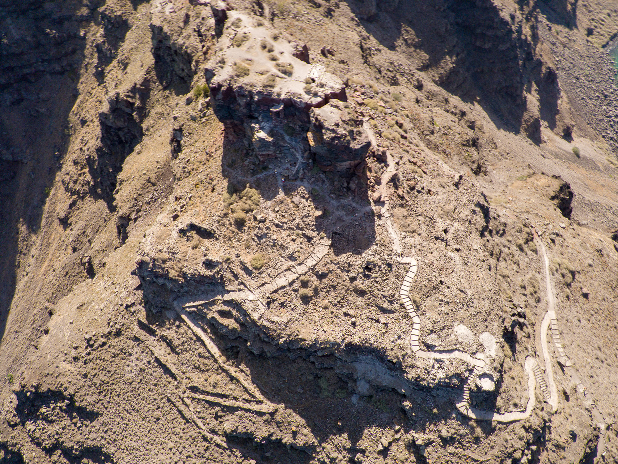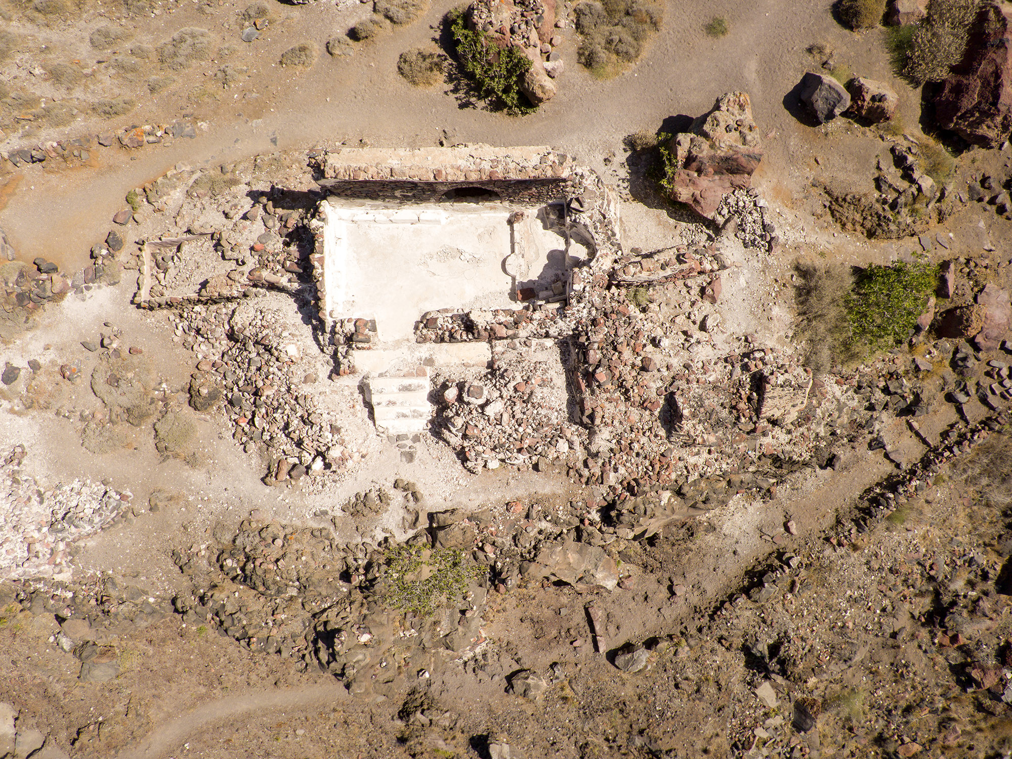 Οι συνεχείς καταρρεύσεις του ηφαιστειακού βράχου καθώς και όλων των κατασκευών είχαν καλύψει τα ερείπια της οχυρωμένης πόλης με συντρίμμια. Κατά τη διάρκεια των εργασιών καθαρισμού, εντοπίστηκαν δεκάδες κτίρια εντός των τειχών του Σκάρου (σχ. 1), τα υπόγεια ή τα ισόγεια των οποίων ήρθαν στο φως. Τμήματα αυτών των θολωτών κατασκευών ήταν λαξευμένα στο ηφαιστειακό μαλακό έδαφος, ενώ άλλα ήταν χτισμένα με πέτρα.