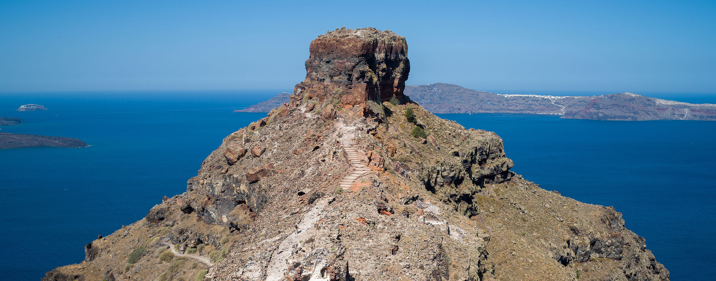 Το ερειπωμένο σήμερα μεσαιωνικό Καστέλι του Σκάρου χτίστηκε στην κορυφή του ομώνυμου Ακρωτηρίου που κυριαρχεί στον κόλπο της καλντέρας, ως το πιο εμβληματικό τοπόσημο της δυτικής ακτής της Θήρας, αποτελώντας ταυτόχρονα τον σημαντικότερο αρχαιολογικό χώρο της καλντέρας, όπου συνδυάζεται με τον πιο αρμονικό τρόπο το μνημείο με το μοναδικό ηφαιστειακό τοπίο.