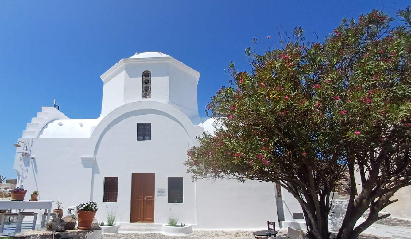 Η Συλλογή Εικόνων και Εκκλησιαστικών Κειμηλίων Πύργου Θήρας στεγάζεται στον ναό της Αγίας Τριάδας, άλλοτε καθολικό γυναικείας μονής, που ανακαινίσθηκε σύμφωνα με κτητορική επιγραφή το 1664, πλήττεται σοβαρά στον σεισμό του 1956 και ανακατασκευάζεται το 1975. Ο ναός βρίσκεται ψηλά στο Καστέλι του Πύργου, ένα από τα πέντε ενετικά Καστέλια της Θήρας, τους οχυρούς οικισμούς που ιδρύονται την μεσαιωνική περίοδο σε στρατηγικές θέσεις του νησιού. Νεότερο από τα Καστέλια του Σκάρου, του Αγίου Νικολάου της Οίας, του Εμπορείου και του Ακρωτηρίου, όπως άλλωστε υποδηλώνει και η ονομασία Καινουριόμπουργκο που του αποδίδεται, κτίζεται πιθανόν στο τέλος του 15ου αιώνα. Η πυκνή συνεχής δόμηση και η περιμετρική διάταξη των σπιτιών εξασφαλίζουν τον οχυρωματικό του χαρακτήρα καθώς οι εξωτερικοί τοίχοι των σπιτιών σχηματίζουν έτσι αμυντικό περίβολο. Τόπος διαμονής όλων των κατοίκων του οικισμού, αποτελεί το διοικητικό κέντρο της περιοχής και έδρα του ορθόδοξου επισκόπου. Η πρώτη αναφορά στο Καστέλι του Πύργου γίνεται το 1584, σε κατάλογο των νησιών των Κυκλάδων και των Κάστρων τους, όπου καταγράφεται με την ονομασία Νυμπουργώ, ενώ η ακμή του τοποθετείται κατά τον 17ο αιώνα, εποχή που ιδρύονται οι περισσότερες εκκλησίες του, όπως τα Εισόδια της Θεοτόκου, ο Άγιος Γεώργιος, ο Άγιος Ιάκωβος και η Αγία Τριάδα.