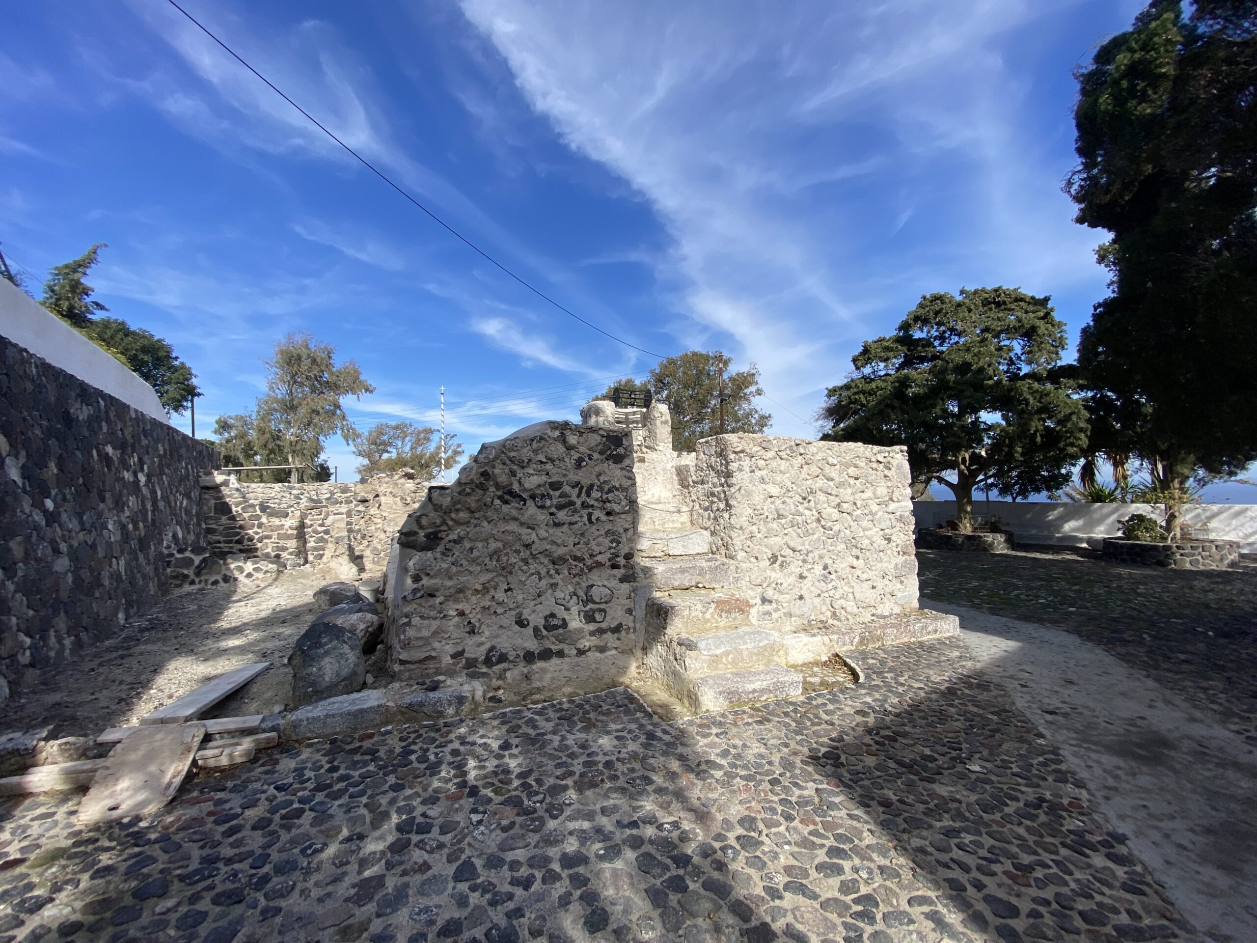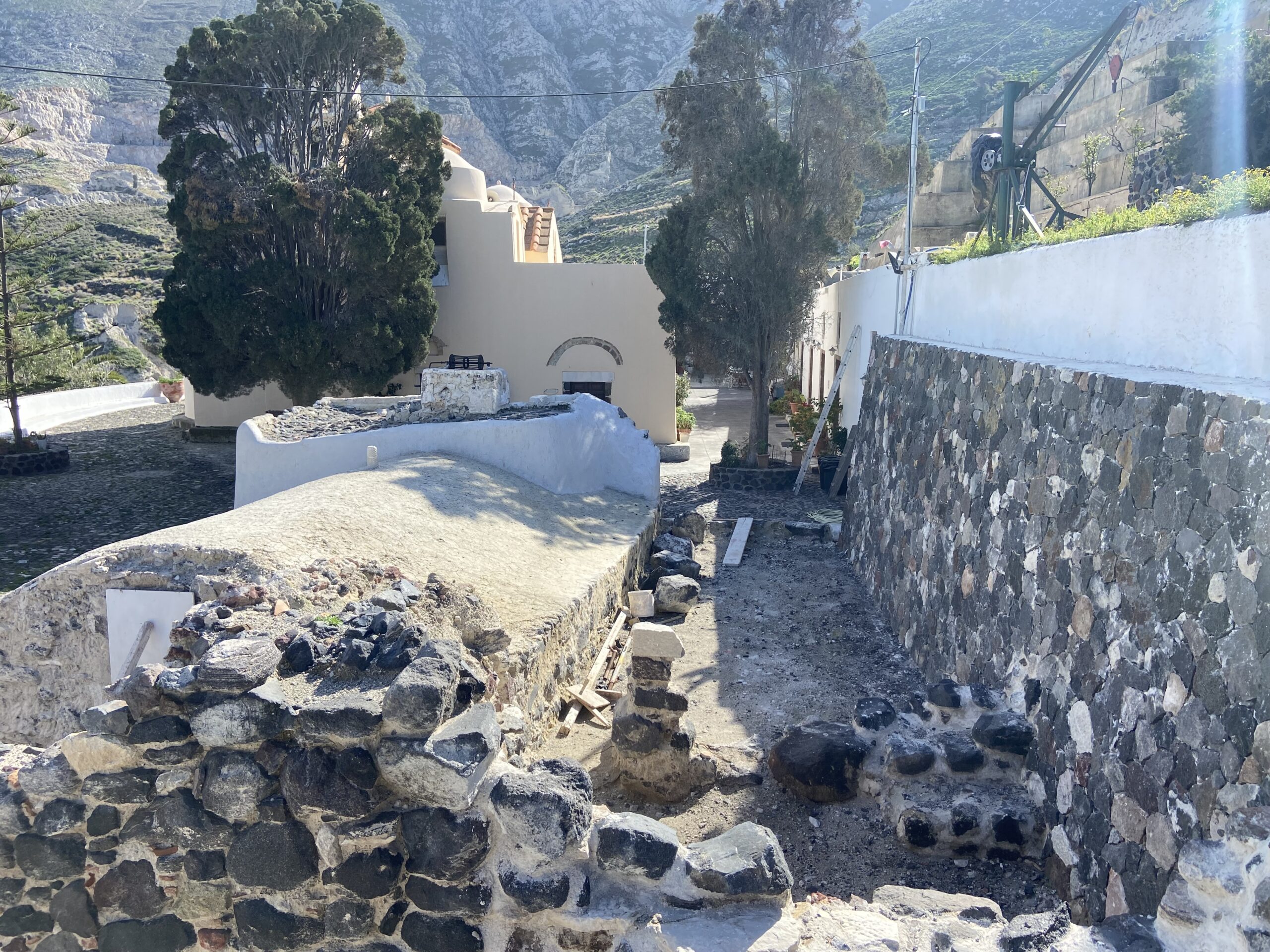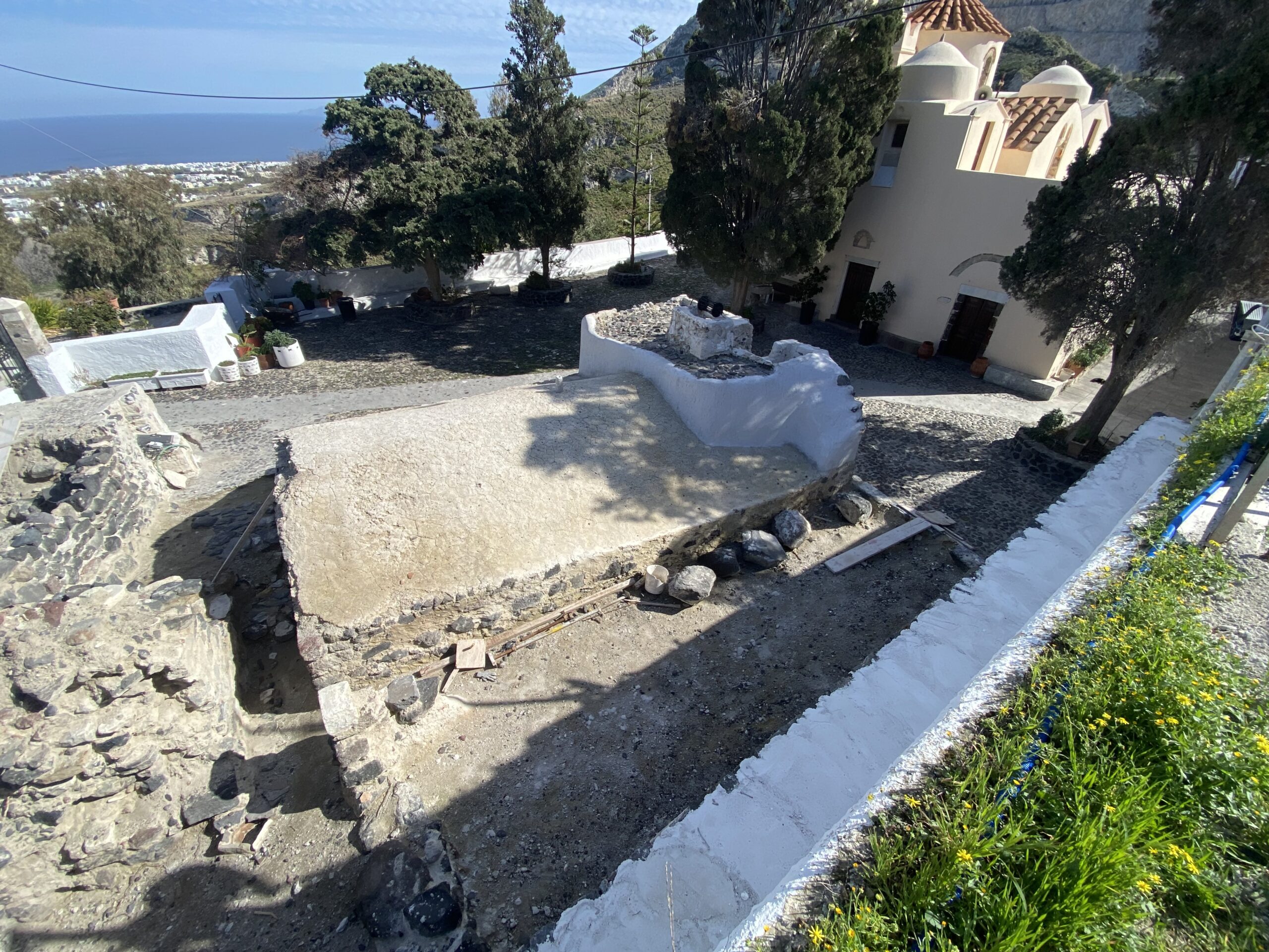 Το 2023 πραγματοποιήθηκαν στο πλαίσιο του έργου «Πρόγραμμα μελετών, συντήρησης και προβολής μνημείων, μνημειακών συνόλων και μουσείων στα όρια του Δήμου Θήρας», στο πλαίσιο της Προγραμματικής Σύμβασης Πολιτισμικής Ανάπτυξης μεταξύ Υπουργείου Πολιτισμού και Αθλητισμού/Εφορείας Αρχαιοτήτων Κυκλάδων, Περιφερείας Νοτίου Αιγαίου-Περιφερειακής Ενότητας Κυκλάδων και Δήμου Θήρας, εργασίες διερεύνησης – αποχωμάτωσης του περιβάλλοντος χώρου της βυζαντινής δεξαμενής και συγκεκριμένα διερευνητικές τομές στα επιχρίσματα των τοίχων που εγκιβώτιζαν τη δεξαμενή και την τσιμεντένια πλάκα που κάλυπτε το επάνω τμήμα. Μετά τις τομές ακολούθησε η καθαίρεση και αποξήλωσή τους. Αποκαλύφθηκαν νέα ευρήματα: α) εντοιχισμένα αρχιτεκτονικά μέλη στην τοιχοποιία που εγκιβώτιζε τη δεξαμενή, β) η ύπαρξη τουλάχιστον τριών πλακόστρωτων στο δώμα που κάλυπτε την εγκιβωτισμένη δεξαμενή, γ) νέοι τοίχοι και κατασκευές. Ακολούθησε ανασκαφική έρευνα όπου αποκαλύφθηκαν τα εξωρράχια του θόλου της δεξαμενής, αλλά και ο περιβάλλων χώρος της. Τέλος κατασκευάσθηκε αναλημματικός τοίχος στα δυτικά της δεξαμενής για την προστασία της από τις κατολισθήσεις, λόγω του φυσικού πρανούς.