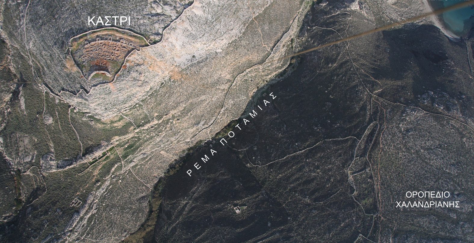 Ο οχυρωμένος οικισμός του Καστριού (Ακρόπολη Χαλανδριανής κατά τον Χ. Τσούντα) βρίσκεται στο απόκρημνο ύψωμα Καστρί στα δυτικά του οροπεδίου των Χαλάνδρων, υπολογίζεται σε περίπου 5 στρέμματα και χρονολογείται στην επόμενη ΠΚ ΙΙΙΑ περίοδο (2.300 – 2.200 π.Χ), μια περίοδο που χαρακτηρίζεται από κινδύνους και αναταραχές. Χαρακτηριστική είναι η οχύρωσή του, με το προτείχισμα, το κυρίως τείχος με τους πεταλόσχημους πύργους και ένα τοξοειδές τείχος στην κορυφή του υψώματος. Η δόμησή του είναι πυκνή με μικρά σπίτια που έχουν ένα ή δύο δωμάτια ορθογώνια ή καμπυλόγραμμα. Μεταξύ τους υπάρχουν στενοί δρόμοι που σε μερικές περιπτώσεις είναι βαθμιδωτοί. Σημαντικό ρόλο στην ανάπτυξη του οικισμού φαίνεται ότι έπαιξε η μεταλλουργία. Βρέθηκαν μεταλλικά αντικείμενα (πελέκεις εγχειρίδια, αιχμές δοράτων) καθώς και ένα εντυπωσιακό αργυρό διάδημα με στικτή διακόσμηση, που εικονίζει ανθρώπινες μορφές και μορφές ζώων. Βρέθηκαν επίσης πήλινες χoάνες για την τήξη μετάλλων καθώς και μήτρες από σχιστόλιθο και πηλό για την κατασκευή εργαλείων και όπλων.