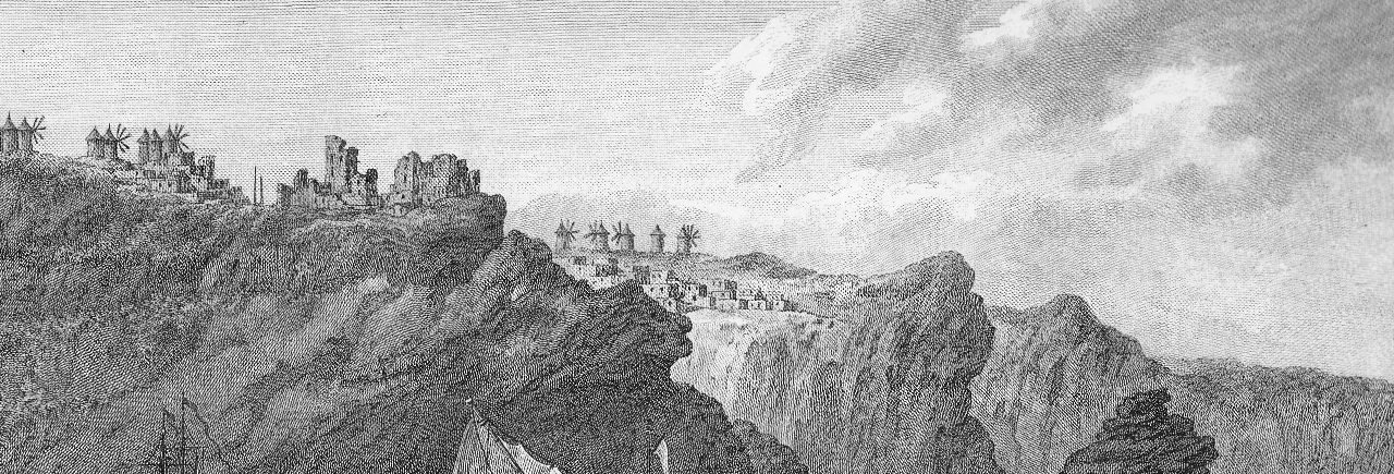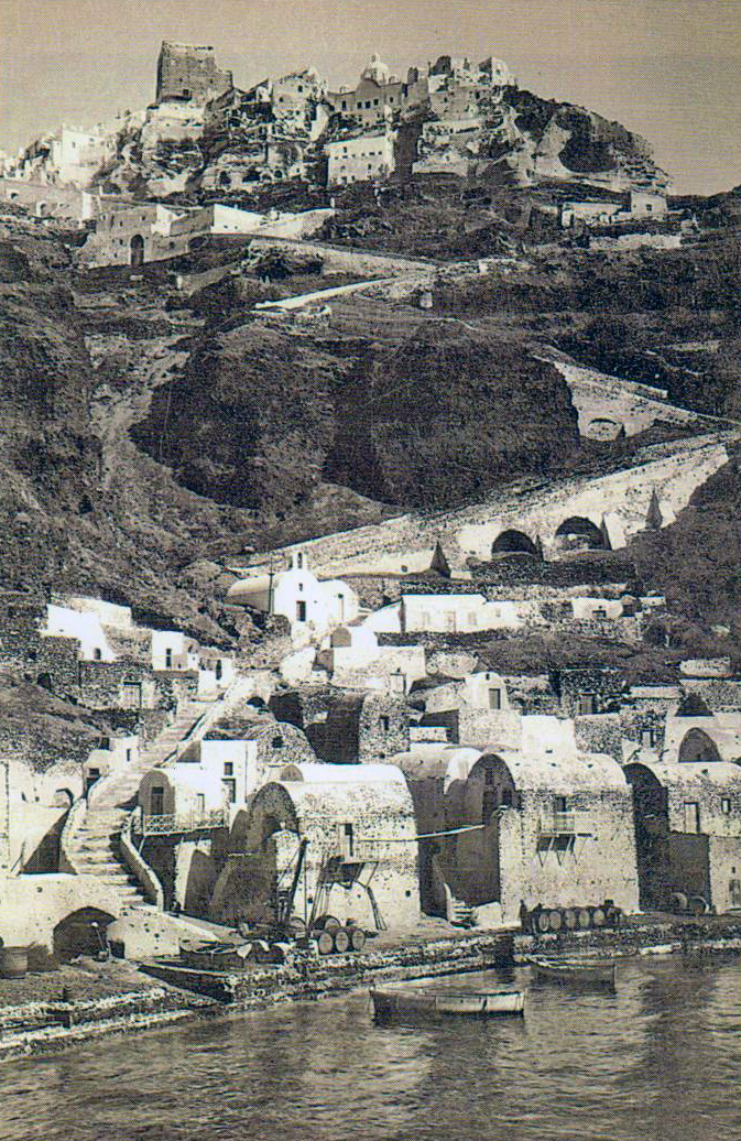 Στο λεύκωμα του Choisel–Gouffier του 1782 διακρίνεται ο αρχικός οχυρωματικός πυρήνας του οικισμού, αποτελούμενος από ψηλά τριώροφα και τετραώροφα κτήρια, με λίγα ανοίγματα στα ψηλότερα μέρη τους. Στην είσοδο του Καστελιού υπήρχε ο σημερινός ερειπωμένος Γουλάς. Ο Γουλάς, αμυντικός πύργος εντός του Καστελιού, ήταν ορθογωνικής κάτοψης πολυόρωφος πύργος που σύμφωνα με την τυπολογία παρόμοιων οχυρωματικών κατασκευών πρέπει να διέθετε σιδερένια θύρα, επάλξεις, πολεμίστρες και καταχύστρα και αποτελούσε το ύστατο καταφύγιο των αρχόντων του αλλά και κατοίκων του Κάστρου σε περίπτωση πολιορκίας. Ο οικισμός του Αγ. Νικόλαου ο οποίος επεκτάθηκε στη συνέχεια στους βασικούς δρόμους που τον συνέδεαν με τους μύλους, ήταν έδρα ορθόδοξου Έλληνα επισκόπου με ποίμνιο περί τις 500 ψυχές, όπως αναφέρει ο Γάλλος περιηγητής Thevenot (1655) και ήταν ο πολυπληθέστερος οικισμός του νησιού σε σχέση με το Καστέλι του Πύργου που είχε 200 κατοίκους, του Εμπορείου λιγότερους από 200, του Ακρωτηρίου 150 και τέλος του Σκάρου που δεν ξεπερνούσε τα 150 σπίτια.