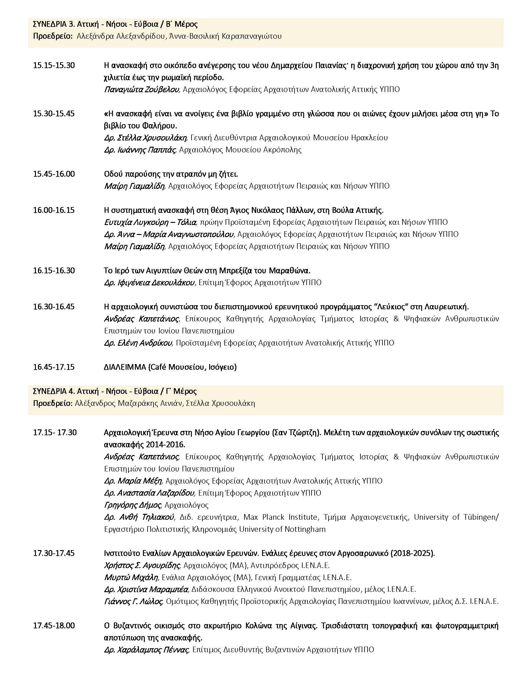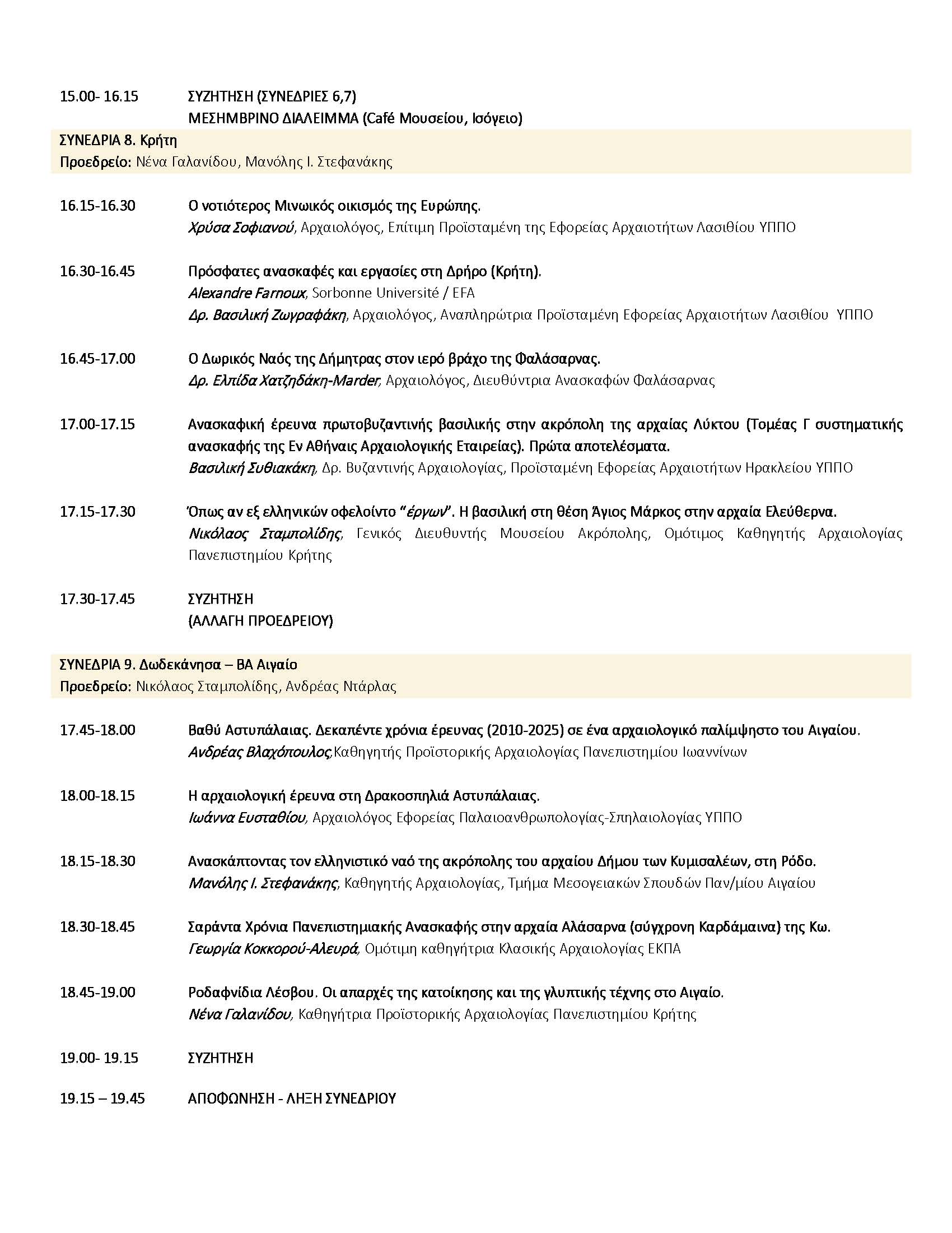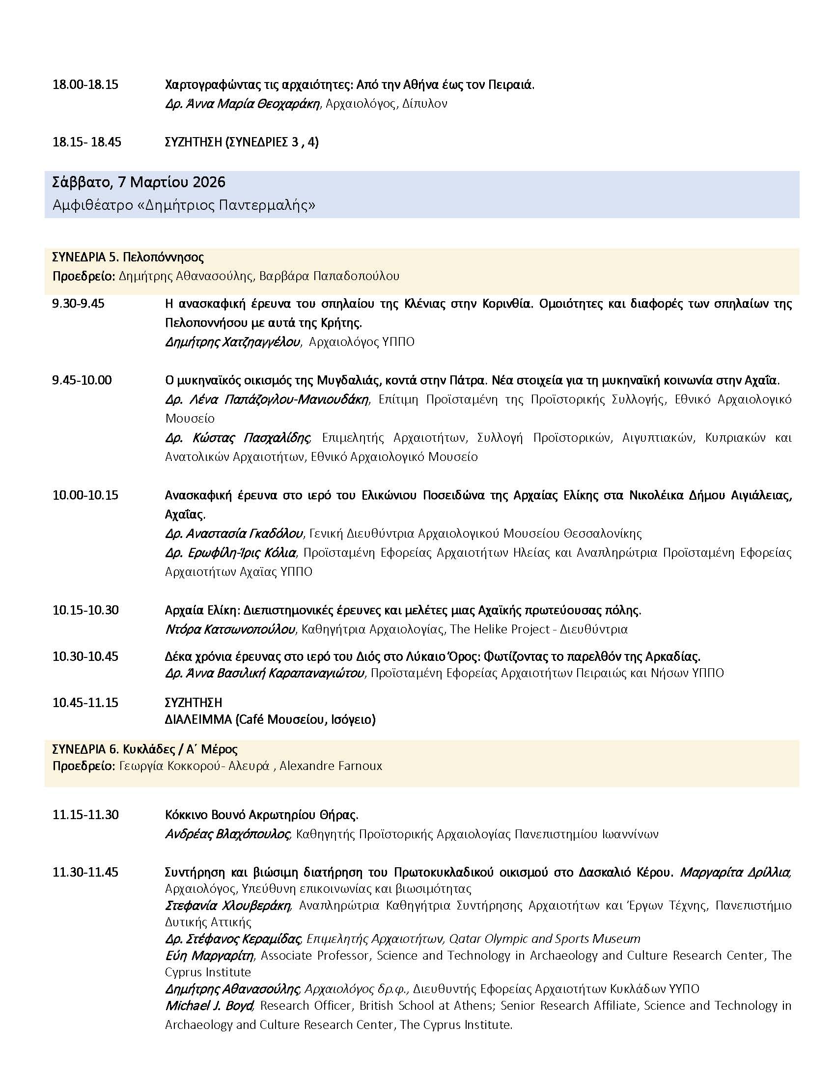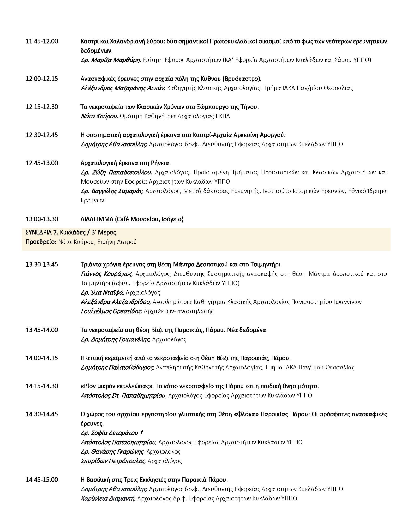Στο συνέδριο, όπου θα παρουσιαστούν οι αρχαιολογικές έρευνες που έχει χρηματοδοτήσει η ΑΜΚΕ την τελευταία εικοσαετία, σε πολλές περιοχές της Ελλάδος, στις οποίες περιλαμβάνονται 13 ανακοινώσεις από ανασκαφές στις Κυκλάδες.